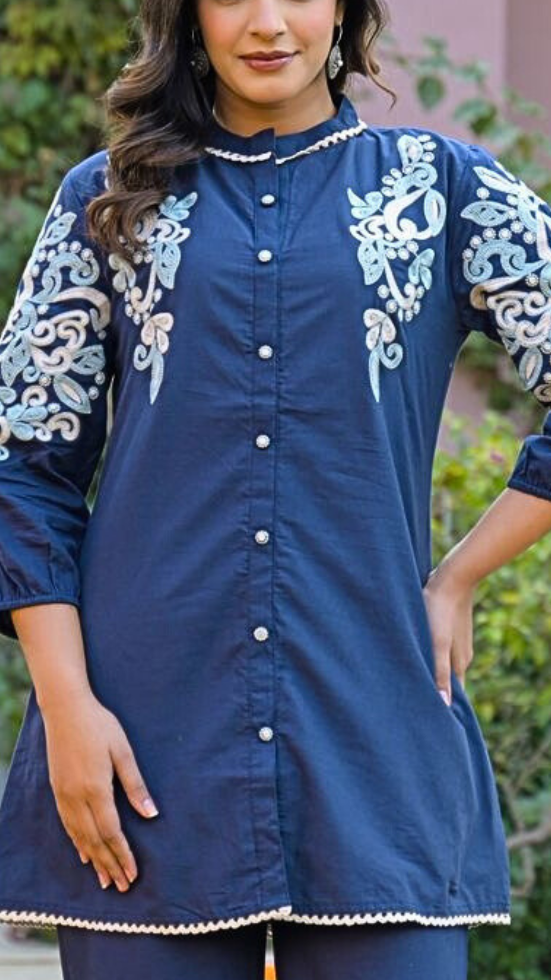 Blue Cotton Coord Set with Thread Embroidery - S