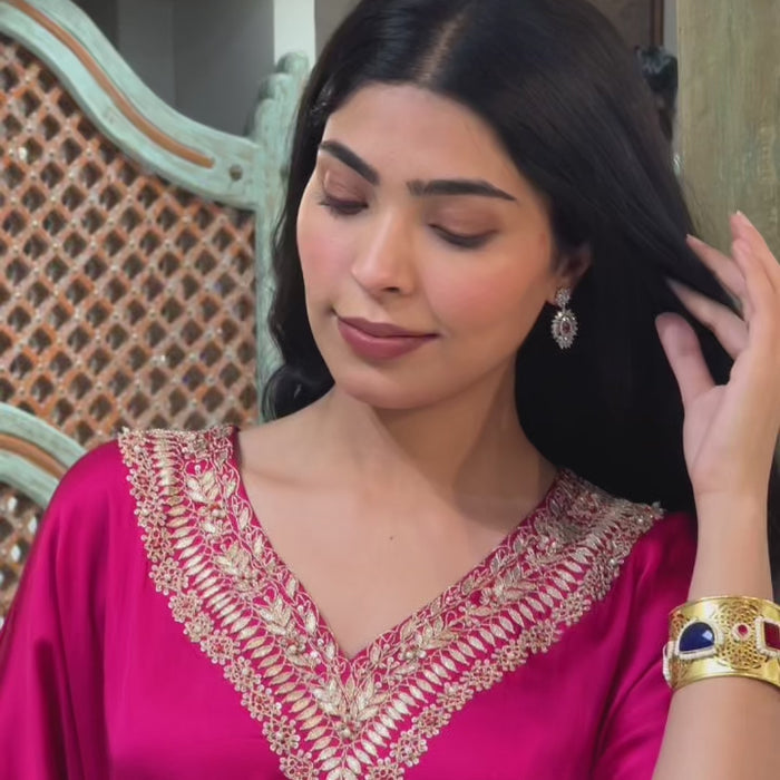 Ombre Pink Satin Crepe Indowestern Kaaftan and Bottom with Gota and Pearl Work - XS