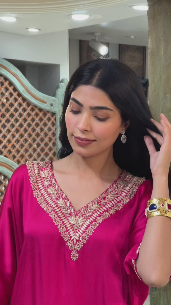 Ombre Pink Satin Crepe Indowestern Kaaftan and Bottom with Gota and Pearl Work
