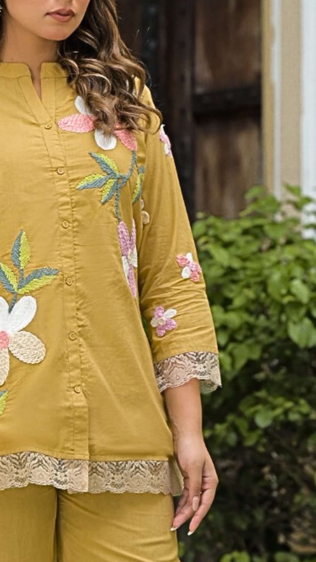 Yellow Cotton Coord Set with Thread Embroidery - S